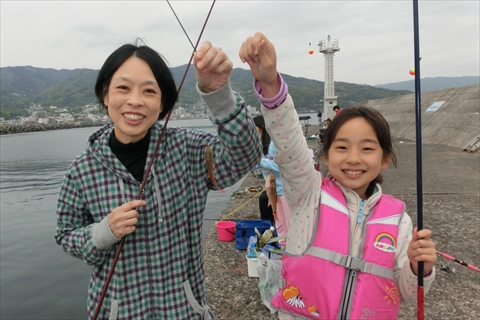 その後、はーちゃんも念願のおさかなゲット! サポート役に徹していた英輔もゲット。