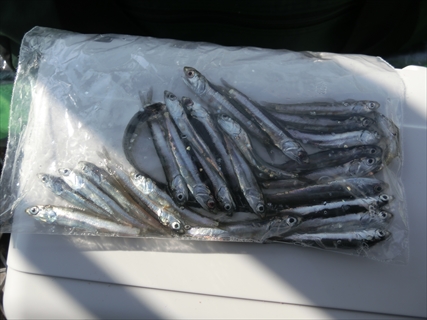 釣果:イワシ(5〜6cm)30尾…アオムシくん、英輔